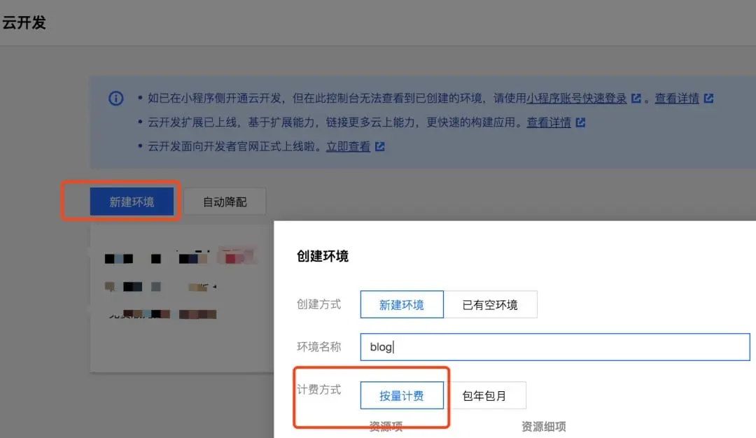 我们进入腾讯云的云开发(cloudbase)控制台,选择开通一个云环境: