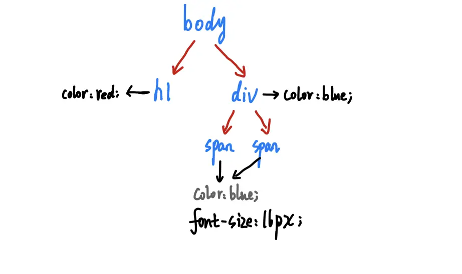 子节点会拥有父节点的样式,由此我们可以画出这样一张图