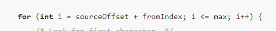 for (int i = sourceOffset + fromIndex; i <= max; i++) {