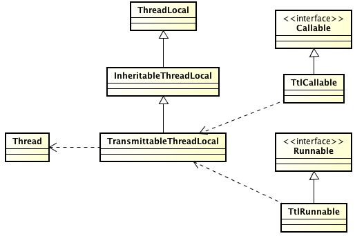 Runable或者Callable必须封装成TtlRunable或者TtlCallable。TransmittableThreadLocal覆盖实现了ThreadLocal的set、get、remove,实际存储inheritableThreadLocal值的工作还是inheritableThreadLocal父类完成,TransmittableThreadLocal只是为每个使用它的Thread单独记录一份存储了哪些TransmittableThreadLocal对象。