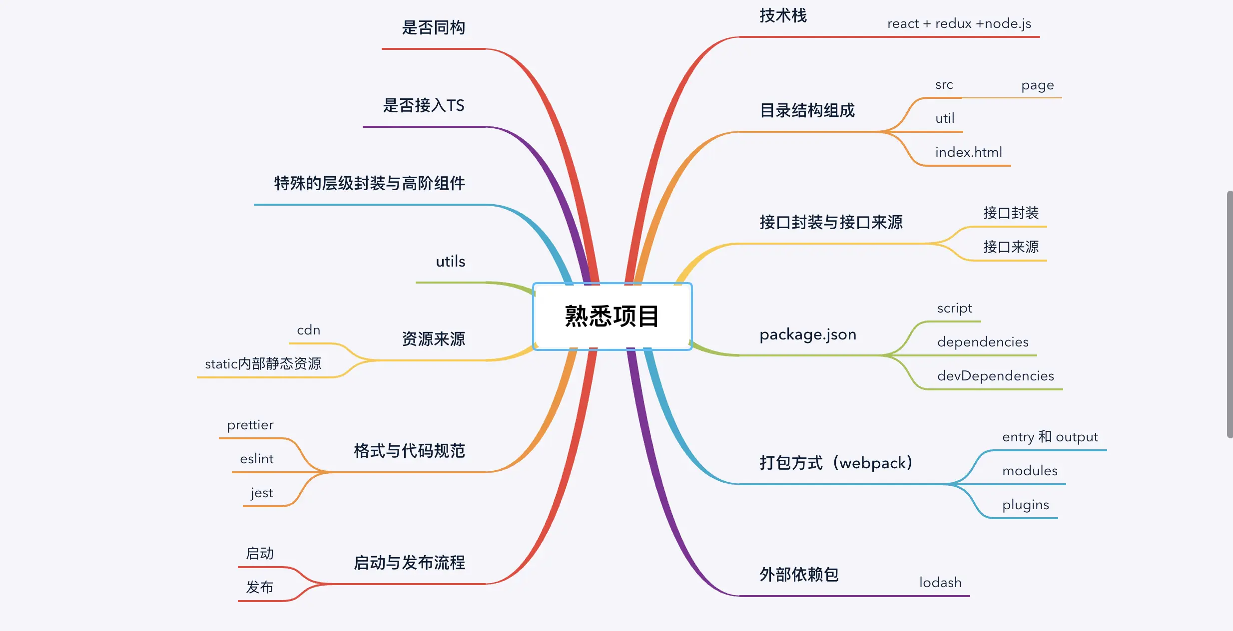 技巧分享:从哪几个方面去了解一个新的项目 Responsibility本尊 2020-04-08 620 阅读1分钟 熟悉项目 发现很多人包括我自己,拿到一个新项目去熟悉的时候不知道该如何下手,于是我建立了一个demo,每个新项目都会去照着demo上的分支去熟悉并补充完整,会发现效率非常高,不仅是新项目,旧项目也可以更好的去了解整个项目的架构。此举有助于建立自己的整体意识, demo如下,仅供参考,大家可以根据自己的经验和项目建立自己的demo