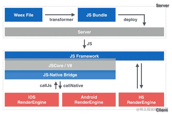 所以Weex原理和Flutter,RN等框架一样,只是扮演着一个中间者的角色!!!至于好不好使,都是开源的东西,除了依赖于开源平台技术以及生态支持外,更多的还是在于开发实践者本身~