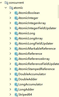 Atomic是jdk提供的一系列包的总称,这个大家族包括原子整数(AtomicInteger,AtomicLong,AtomicBoolean),原子引用(AtomicReference,AtomicStampedReference,AtomicMarkableReference),原子数组(AtomicIntegerArray,AtomicLongArray,AtomicReferenceArray),更新器(AtomicIntegerFieldUpdater,AtomicLongFieldUpdater,AtomicReferenceFieldUpdater)。