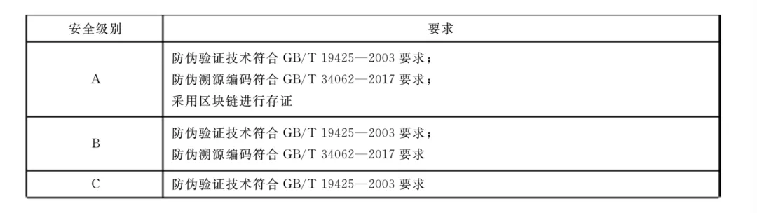 《基于移动互联网的防伪溯源验证通用技术条件》安全级别