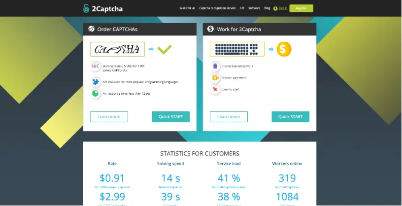 最后 2Captcha 这个网站我放在下面,有感兴趣的朋友可以看一下。另外如果有什么爬虫方面想看的文章,也欢迎在下面留言,我们会挑选被点赞较多的主题尽快写文。谢谢!