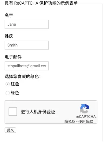在这里可以看到有一个表单,上面有一些输入框,下方是 reCAPTCHA V2 验证码。