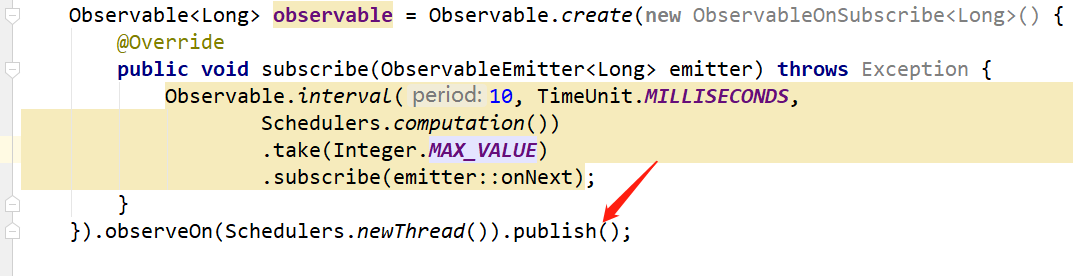 Observable.publish():将一个Observable转换为一个可连接的Observable 。 ConnectableObservable.connect():指示一个可连接的Observable开始发射数据。