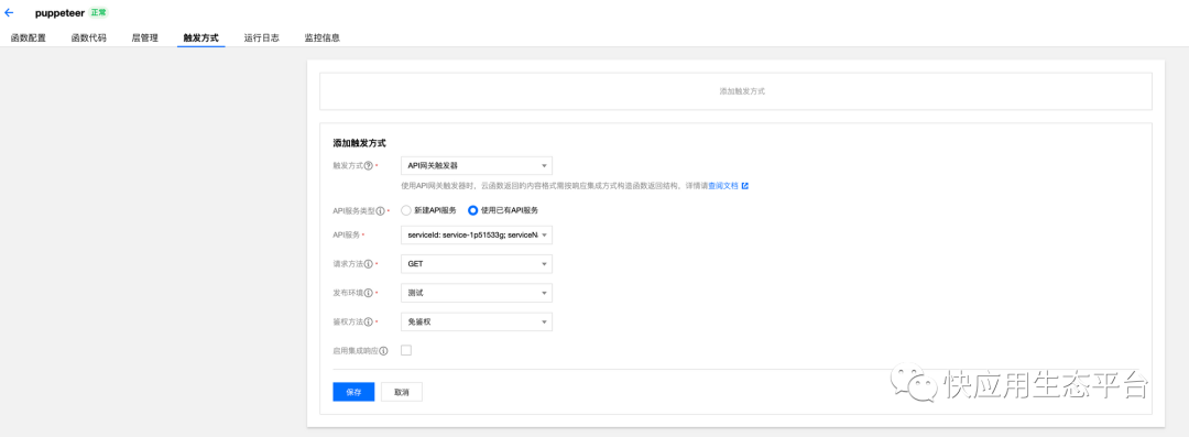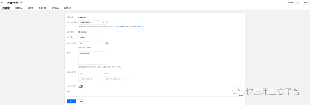 2.上传函数时候需要去掉 puppeteer 的依赖,不然会导致函数包过大,上传时间久。