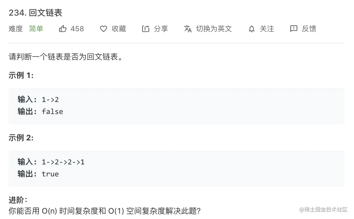 第五题:234. 回文链表