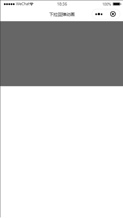 实际上这是我去面试时遇到的一个面试题,这个问题的难点,对于我来说是两个。第一个难点是微信小程序的环境,在这个环境中基本是不用dom操作。如果是原生写,就凭js的api实现这么个效果并不难。在小程序中就要遵循小程序的api以及规则,但是你会发现下拉又成了另一个难点。在微信小程序中是没有下拉事件的,有的也只是scroll-view的整页的下拉刷新,根本就实现不了我所要的效果。说到下拉回弹就不得不说到小程序的另一个组件movable-view,这个组件是可移动的视图容器,在页面中可以拖拽滑动。带有回弹效果,不过是触边回弹,也就是拖动到可移动范围外才会产生回弹。而且你会发现一个坑是回弹的范围不能设置,而且动画的类型也不可能进行设置,动画的类型说白了就是动画运行的曲线。