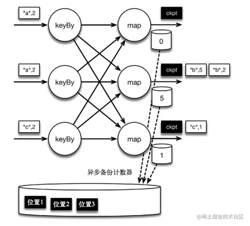 at-most-once:这其实是没有正确性保障的委婉说法——故障发生之后,计数结果可能丢失。