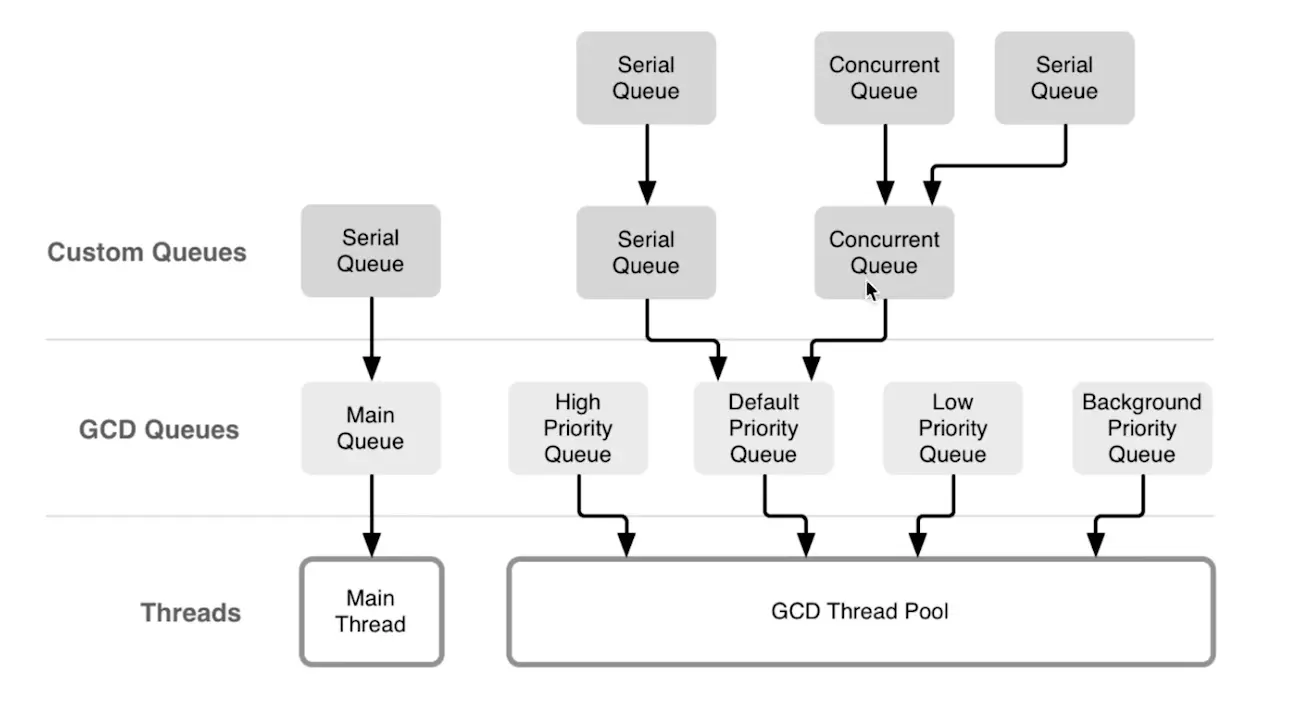 - 需要在主线程等待一个异步任务返回,才能继续执行下面的逻辑,但是又不希望堵塞用户交互事件。(思路:使用并发队列异步执行任务,完毕后通知主队列刷新 UI)