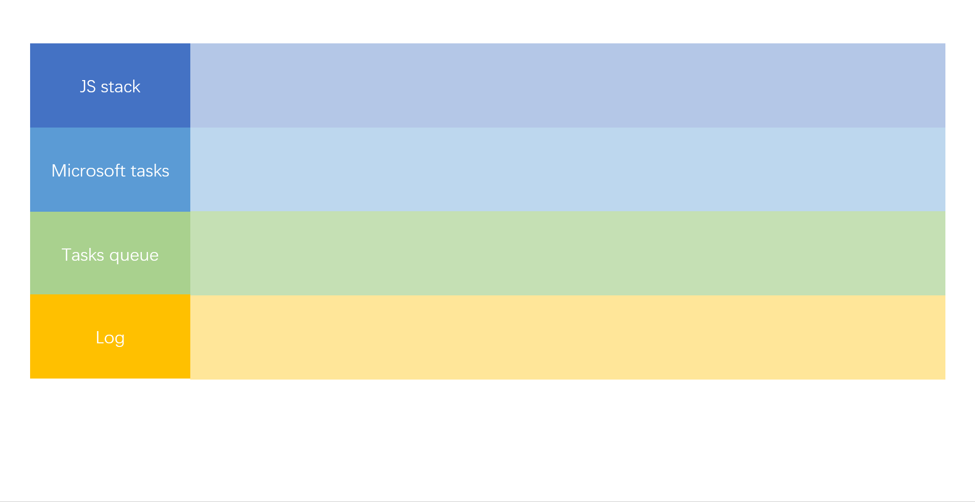 如图所示,类似 setTimeout 的异步回调,等定时时间到了后,会被先放到任务队列中,等主线程中的任务都完成了之后,才会被调入栈中执行。