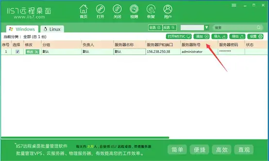 该组件一经推出受到了很多用户的拥护和喜好,所以在WINDOWSXP和2003中微软公司将该组件的启用方法进行了改革,我们通过简单的勾选就可以完成在XP和2003下远程桌面连接功能的开启。当然随着时代的进步,我们操作管理的模式也在不断的更新。为了更方便的我们管理我们的服务器,越来越多的人都会用到远程桌面管理连接服务器,让我们更方便跟简洁的用一台电脑来批量操作我们的VPS服务器,现在IIS7远程桌面管理这是我觉得比较好用的一款程序。