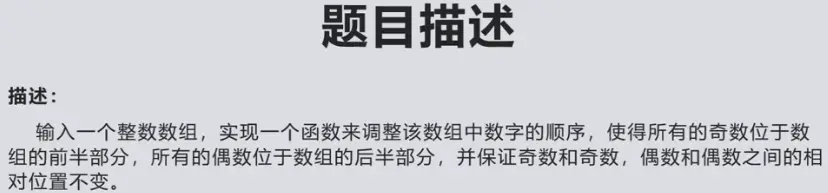 由于要求是把奇数放在前面,相对位置不变那我们就把偶数往后移就行了,但是这时候又要求相对位置不变,那么遇到前偶后奇就交换位置,前奇后偶就不变,连续两个奇数和偶数也都不用变,这里主要是为了保证相对位置不会变化。