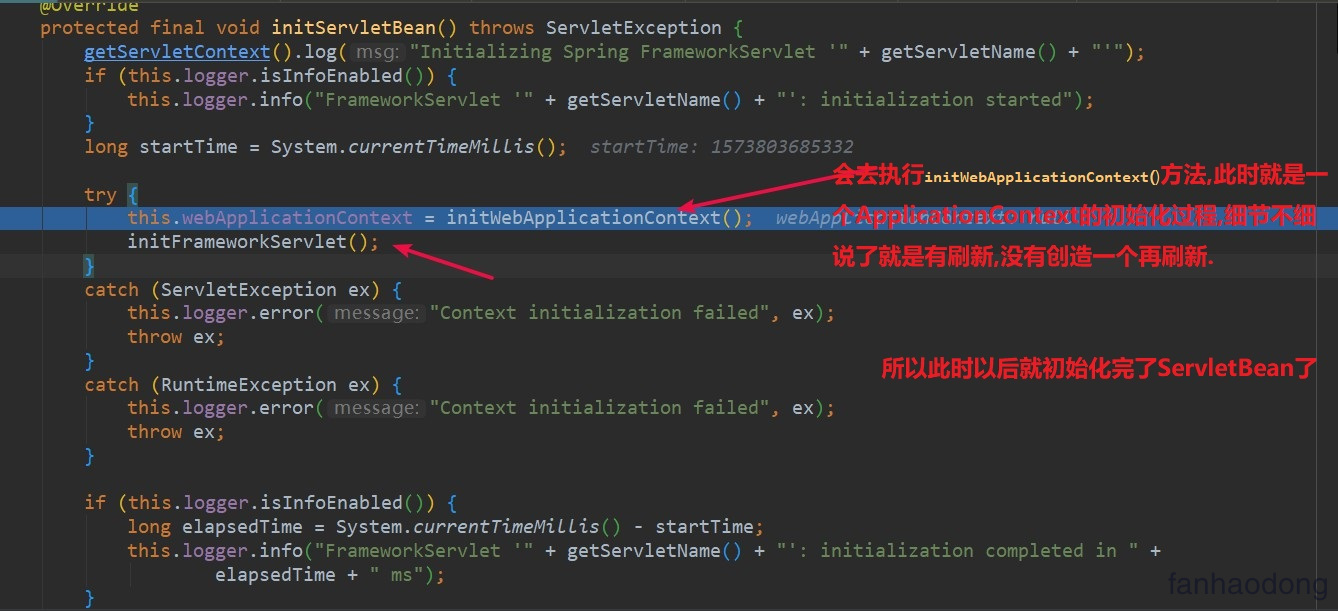 第二步 : 执行 init()中的 initServletBean() 方法 ,