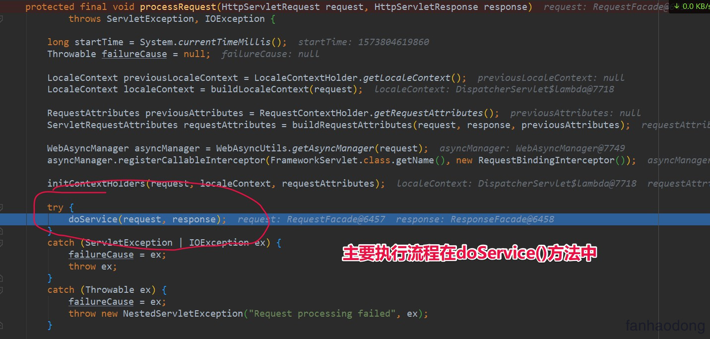 就是 processRequest() 方法上 , 我测试有BUG不能直接进去这个方法 , 也不懂为啥,我们就先看吧,其主要