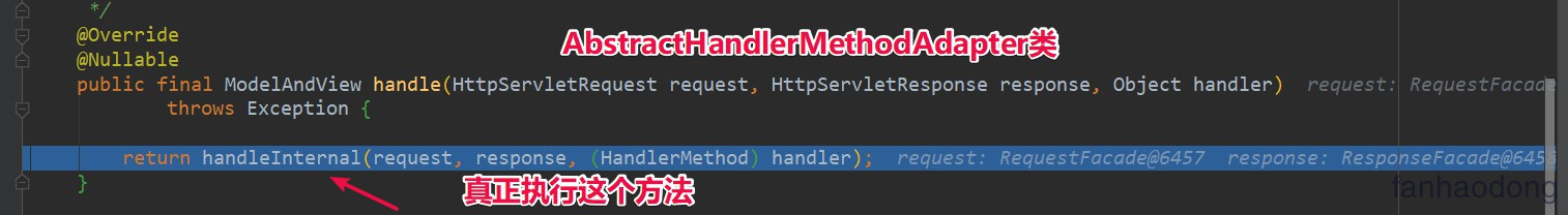 执行 handleInternal(request, response, (HandlerMethod) handler)方法 ,
