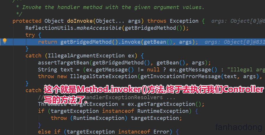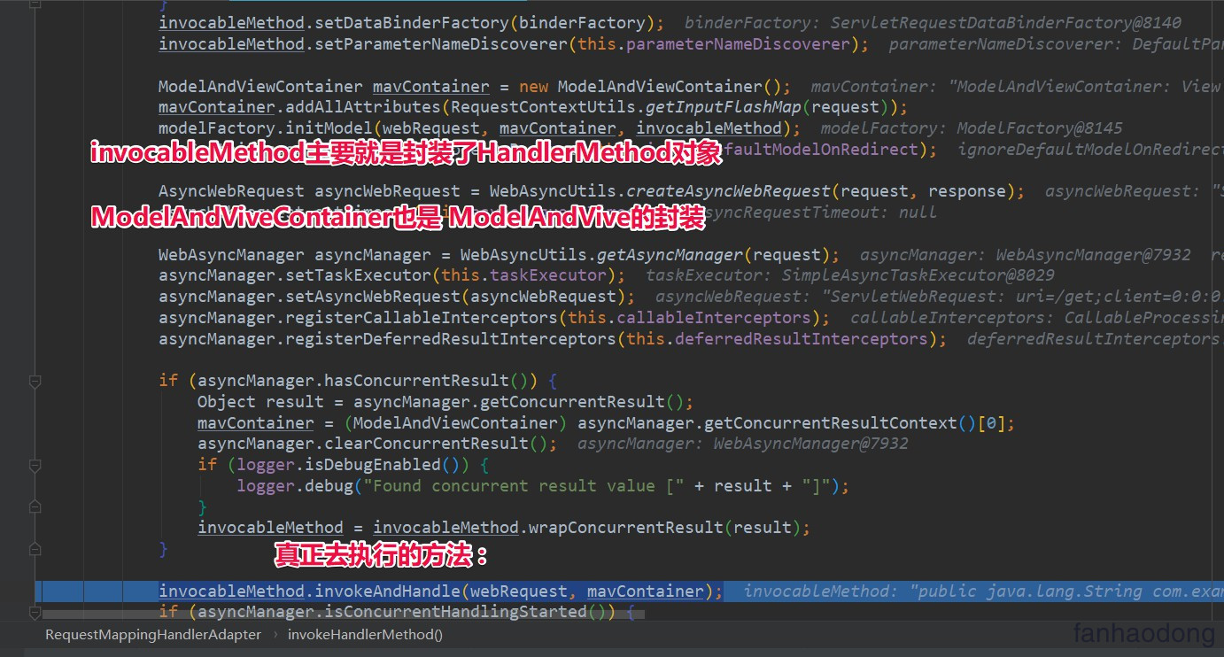 invocableMethod.invokeAndHandle(webRequest, mavContainer);方法执行 :