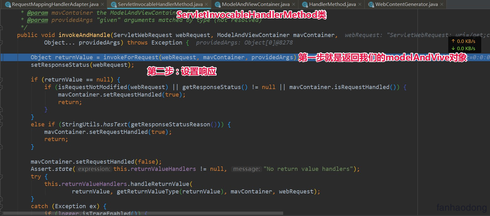 代码太长 我就截取一部分 :通过 HandlerMethod调用 返回 ModelAndVive