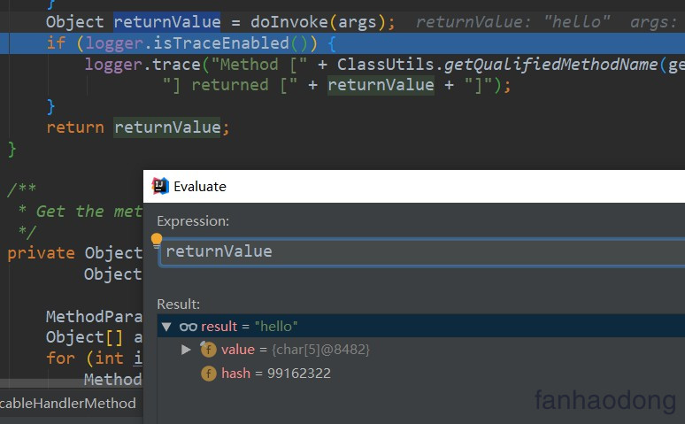 Object returnValue = doInvoke(args); 终于完成了 ............. 执行了我们的写的方法