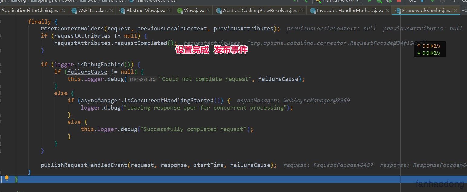 然后最后就到了processRequest() 方法的终点 ,发布了一个事件 , 就完成了