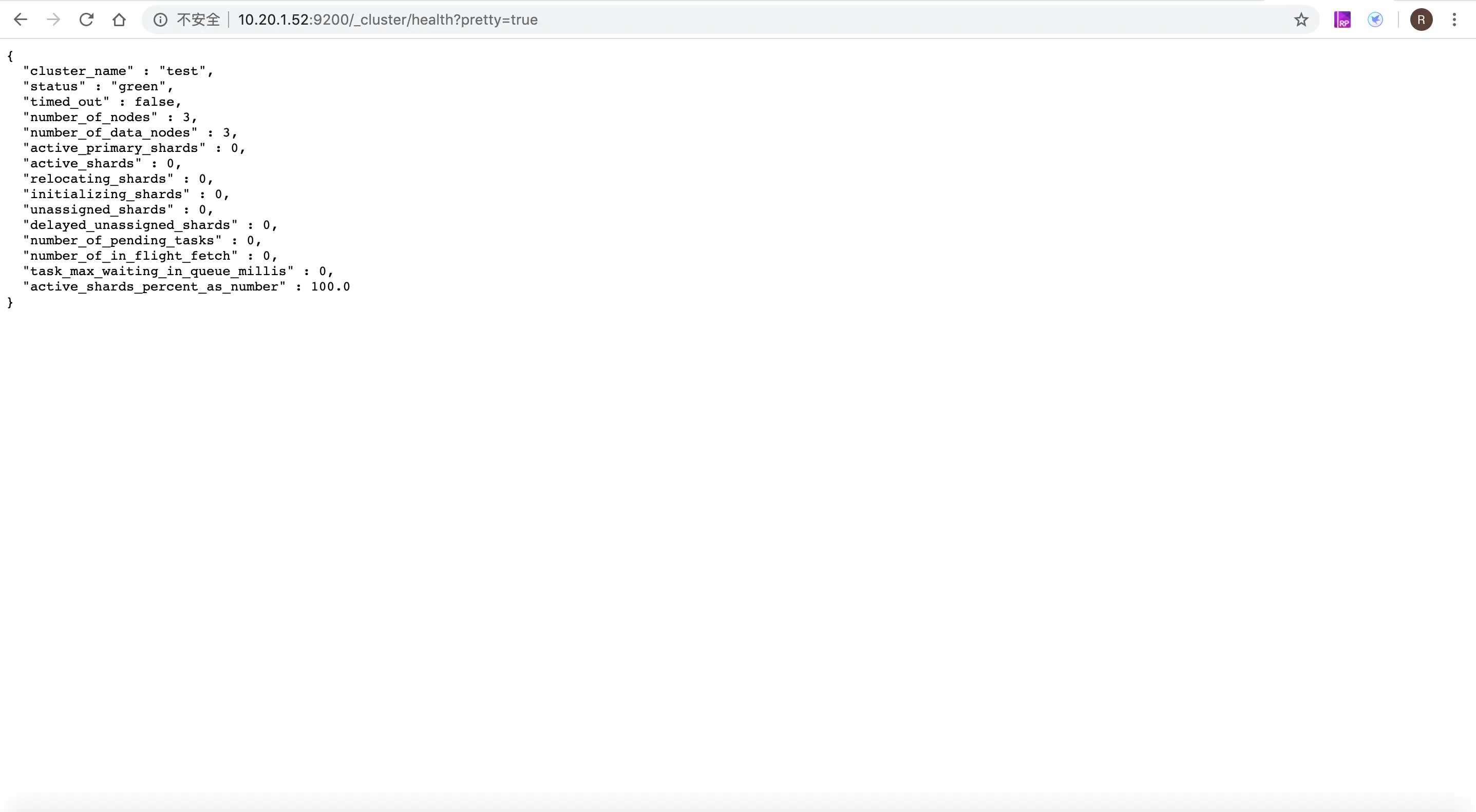 1、浏览器输入:http://10.20.1.52:9200/_cluster/health?pretty=true,查看集群状态