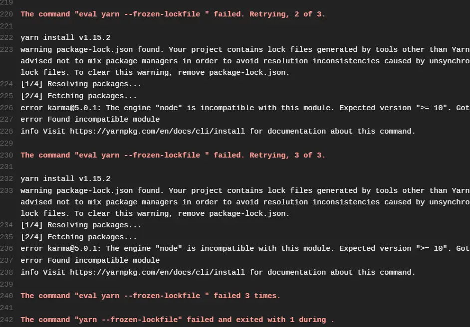 push之后travis就开始进行测试了 但是我一直不明白为什么的结果一直失败,似乎是yarn和npm冲突。这令我很是苦恼
