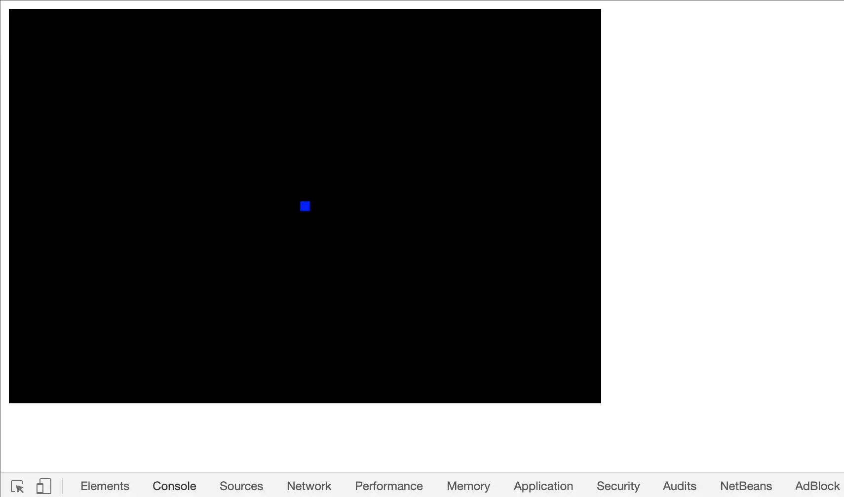 gl.drawArrays的第一个参数是指定绘制方式,第二个参数是从哪个顶点开始绘制,第三个参数是指定绘制要用到多少个顶点。这样我们就能在黑色的画布上的正中心看到一个蓝色的点: