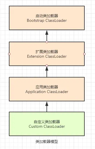 Java 中自带的类加载器分别有启动类加载器(Bootstrap ClassLoader)、扩展类加载器(ExtClassLoader)、应用类加载器(AppClassLoader):