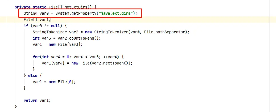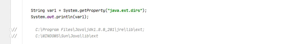 通过分析源码,我们可以知道,ExtClassLoader 是加载 java.ext.dirs 文件下的 .class 文件,我们可以通过打印分析 ExtClassLoader 类加载器具体加载的文件: