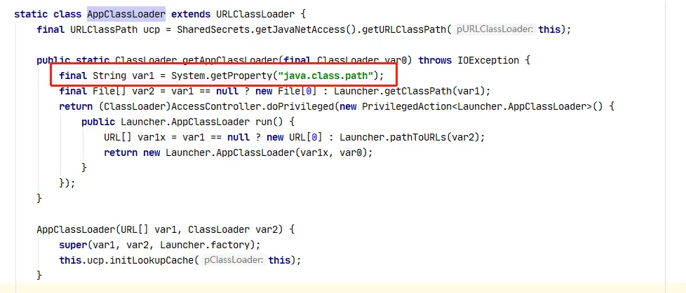 从源码中可以知道,java.class.path 路径就是我们的环境配置 CLASS_PATH 路径,因而 AppClassLoader 加载的类是我们编写的类或者第三方 jar 包中的 .class 文件。