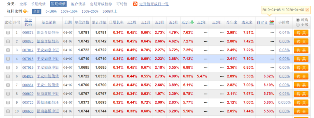 数据来源:天天基金 数据截至2020/4/8