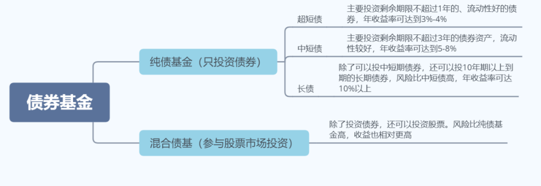 所以,基金类比较适合新手的就是债券类基金。而债券基金其实也有很多分类。请各位继续往下看。