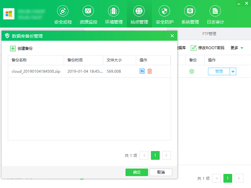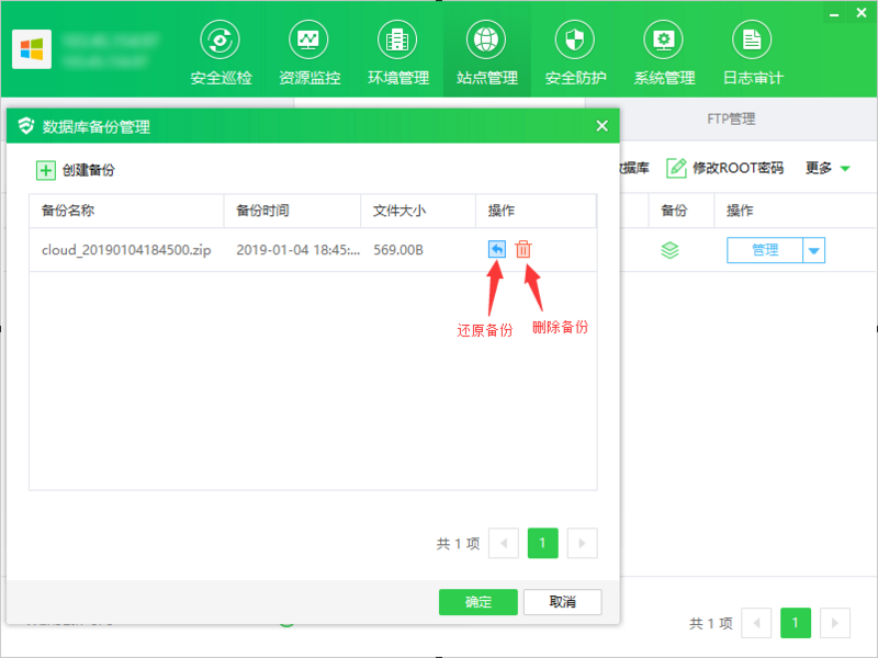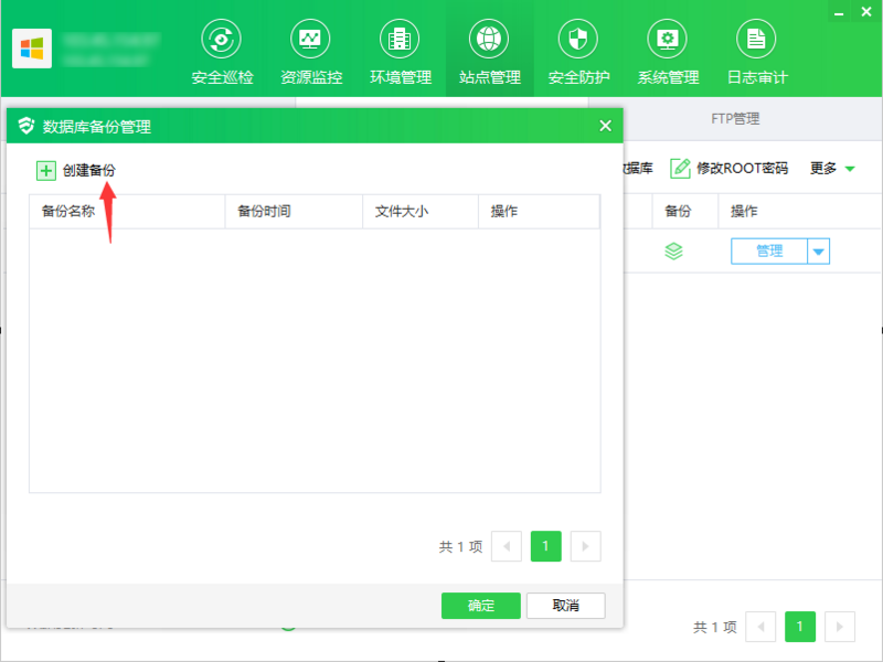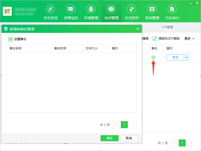 ① 点击"备份",显示数据库备份管理弹框