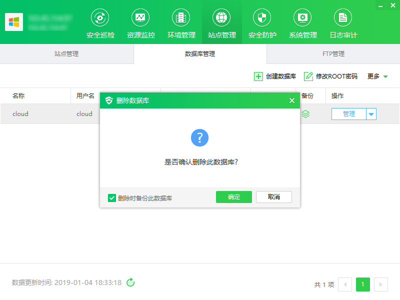 ③ 点击“删除”,显示删除数据库弹框