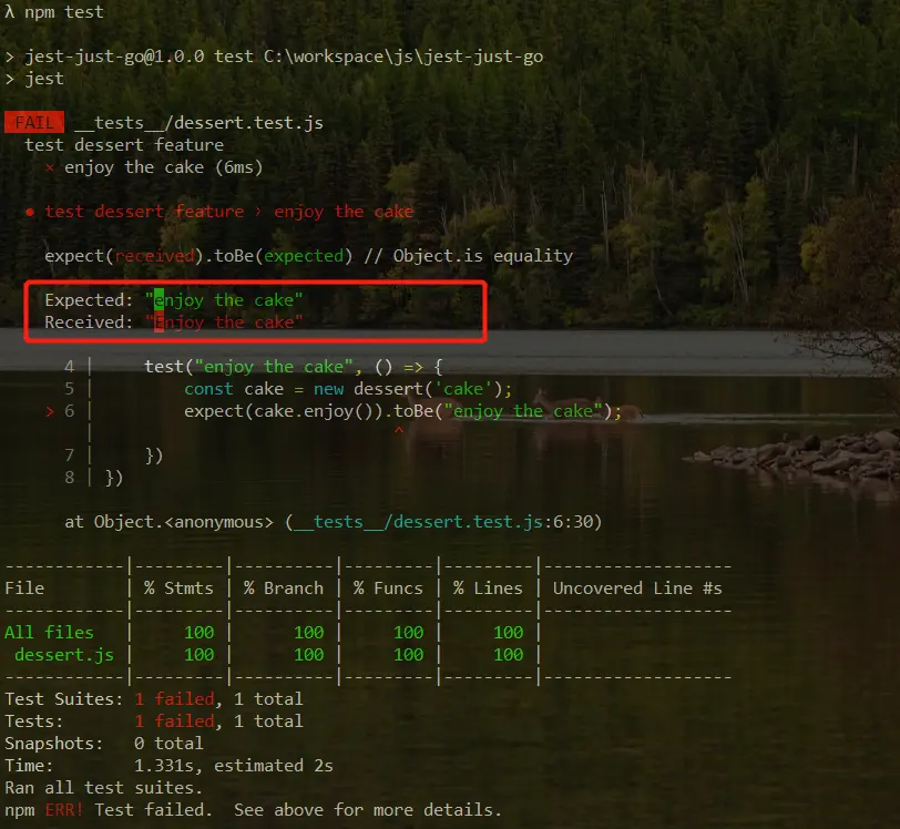expect(cake.enjoy()).toBe("enjoy the cake");