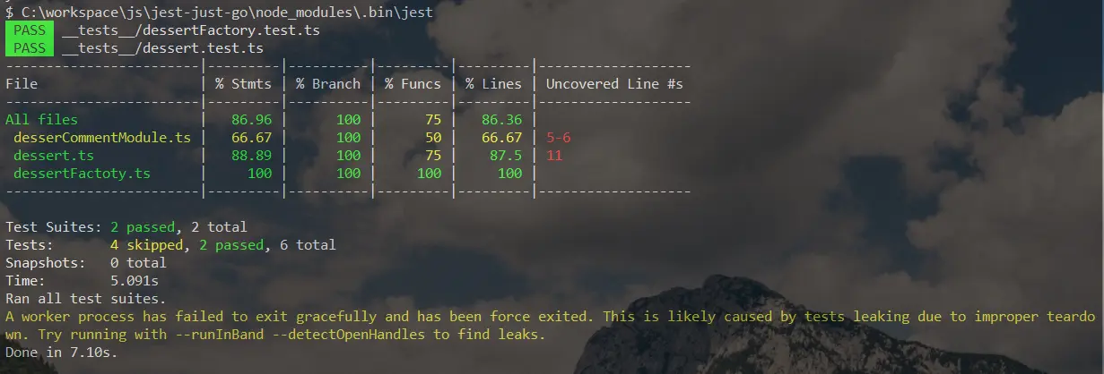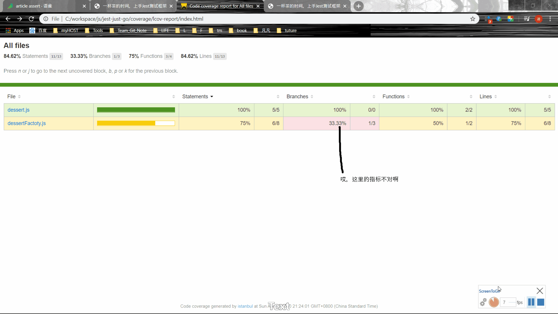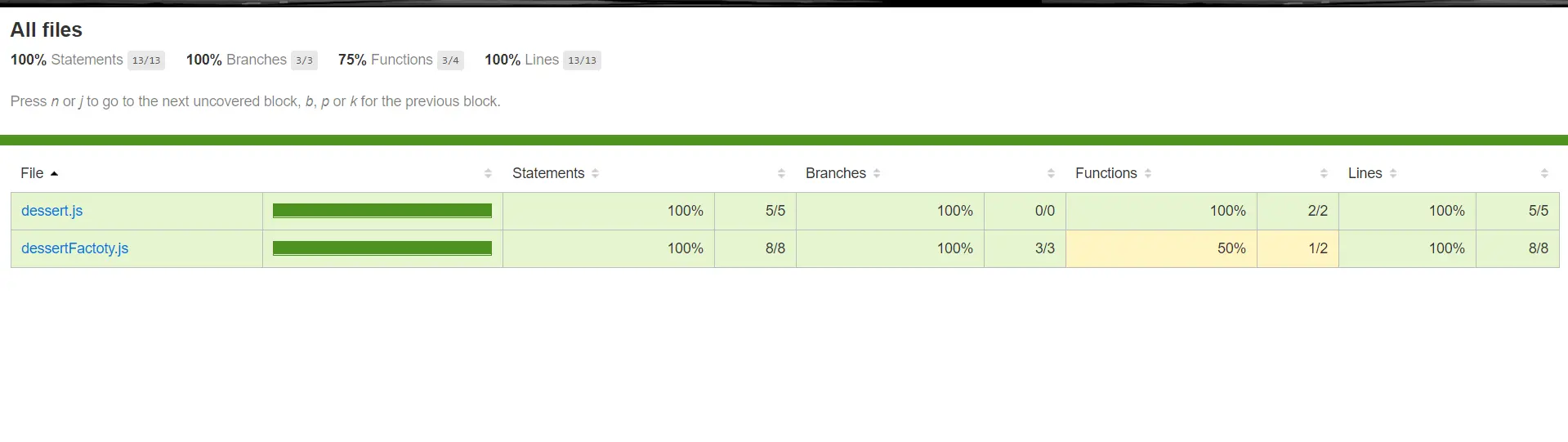 Functions列 为什么不是100%,大家可以点击 dessertFactory.js 根据详细说明分析推测。3.Jest怎么和Typescript完美结合(填坑实录)