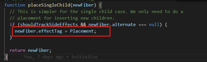 placeSingleChild(...)的作用很简单,给differ后的Fiber添加副作用标签:Placement(替换),表明在之后需要将旧Fiber对应的DOM元素进行替换。