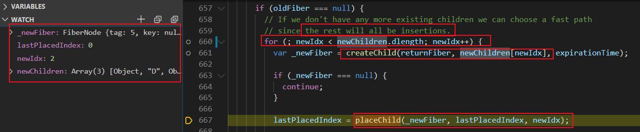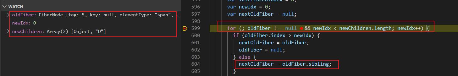 for ( let i = 0, oldFiber; i < newArray.length; ) {