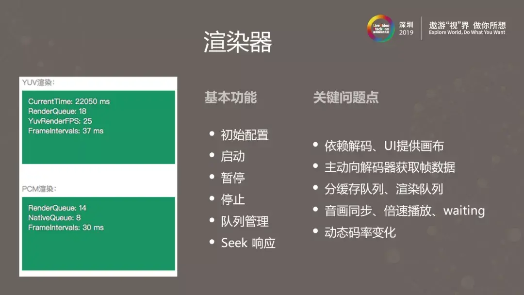 除此之外,渲染器依赖解码器解码生产出的音视频帧数据才能进行音画渲染。
