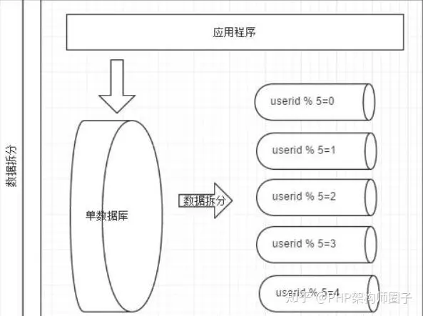 按照用户ID求模,将数据分散到不同的数据库,具有相同数据用户的数据都被分散到一个库中。