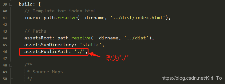 config文件夹下的index.js 中的文件中的 assetsPublicPath :‘/’ 改为 ./ 不然的话会是空白页