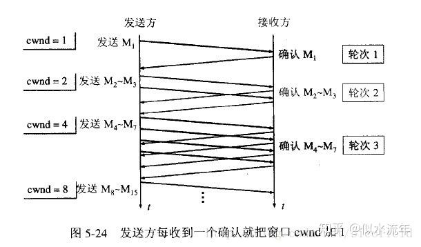 注意:在采用快恢复算法时,慢开始算法只是在TCP连接建立时和网络出现超时时才使用 快恢复。