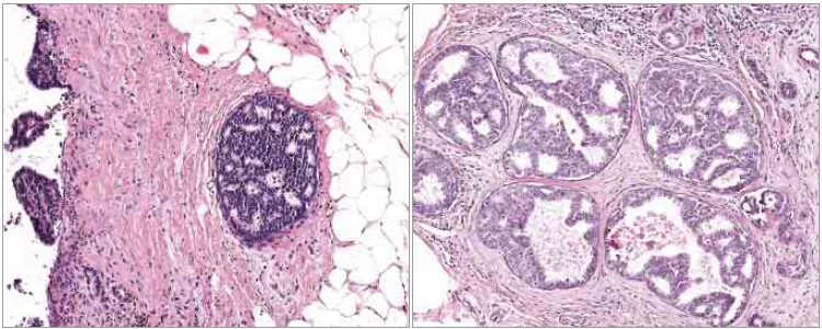 左导管非典型增生,右原位癌,如果误判,后果严重。