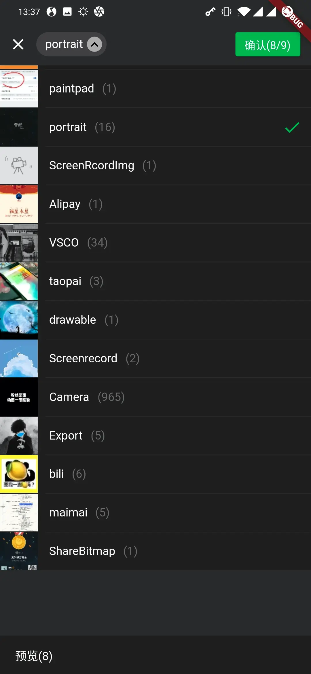 Map<AssetPathEntity, Uint8List> pathEntityList)。保存所有的资源路径,并加载他们的第一个资源的缩略图,提供给路径切换组件。 - 正在查看的资源路径(