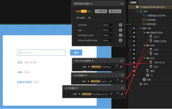 今天我们要制作一个demo,用户只需要输入身份证号,就能够获取到用户的生日,年龄,并计算出距离用户下一次过生日还有多少天。demo中主要用到了字符串的分割和函数组件,下面是具体的实现步骤。
