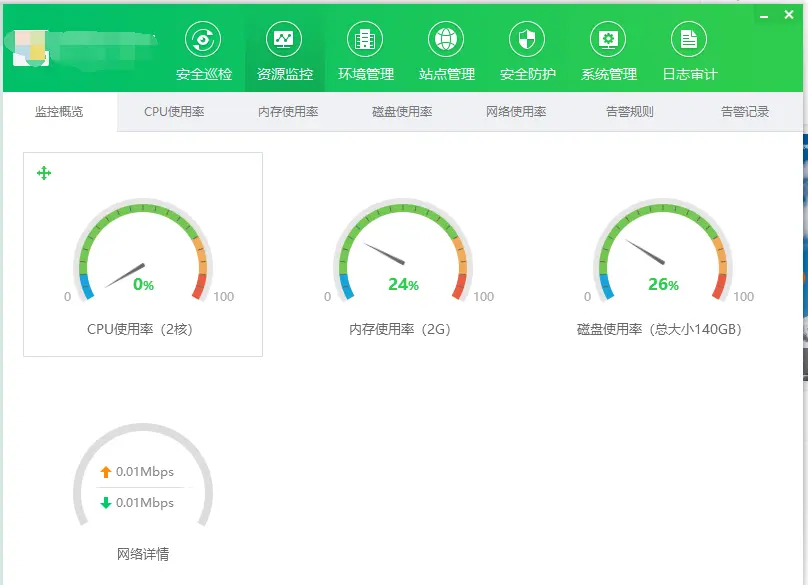 当然,这个软件本质上还是服务器管理面板,资源监控只是它的其中一项功能,还有其他一键安全巡检、一键修复、环境部署、站点管理等基础运维功能,有兴趣也可以自行下载了解。官网直达下载链接