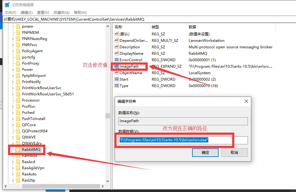 ** 一顿面向搜索引擎操作之后,给出的解释是C:\Users{UserName}.erlang.cookie 和 C:\WINDOWS\System32\config\systemprofile.erlang.cookie不一致了,解决方案是将C:\Users{UserName}.erlang.cookie删除,然后将C:\WINDOWS\System32\config\systemprofile.erlang.cookie复制到上一个目录下。 结果发现还是不行,这时候我懵逼了。 一顿捣鼓之后终于在RabbitMQ 服务发现了端倪: