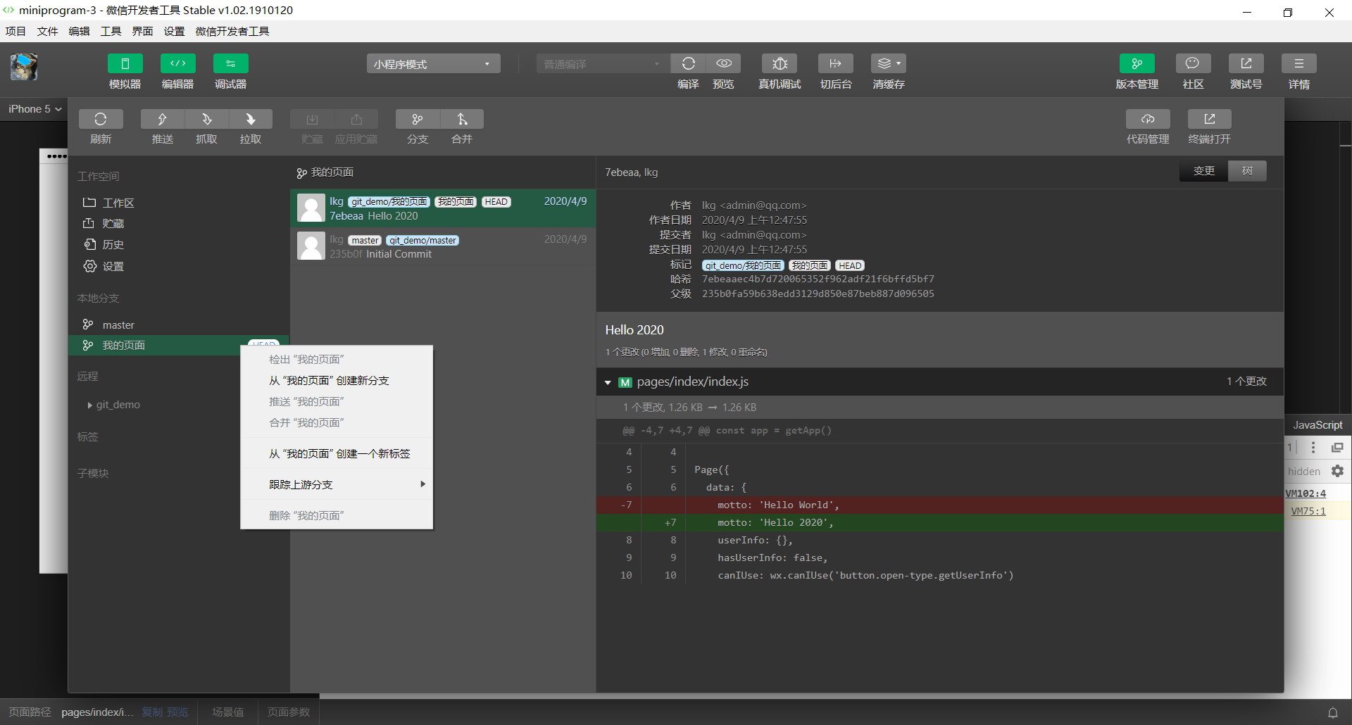 有时候,稿子有争议,老板让你先做出来看看效果。这时,你就该意识到这个需求有可能会被砍掉,如果被砍了,如何恢复到之前那个版本?还是一样的,右键选择“从xxx分支”创建新分支